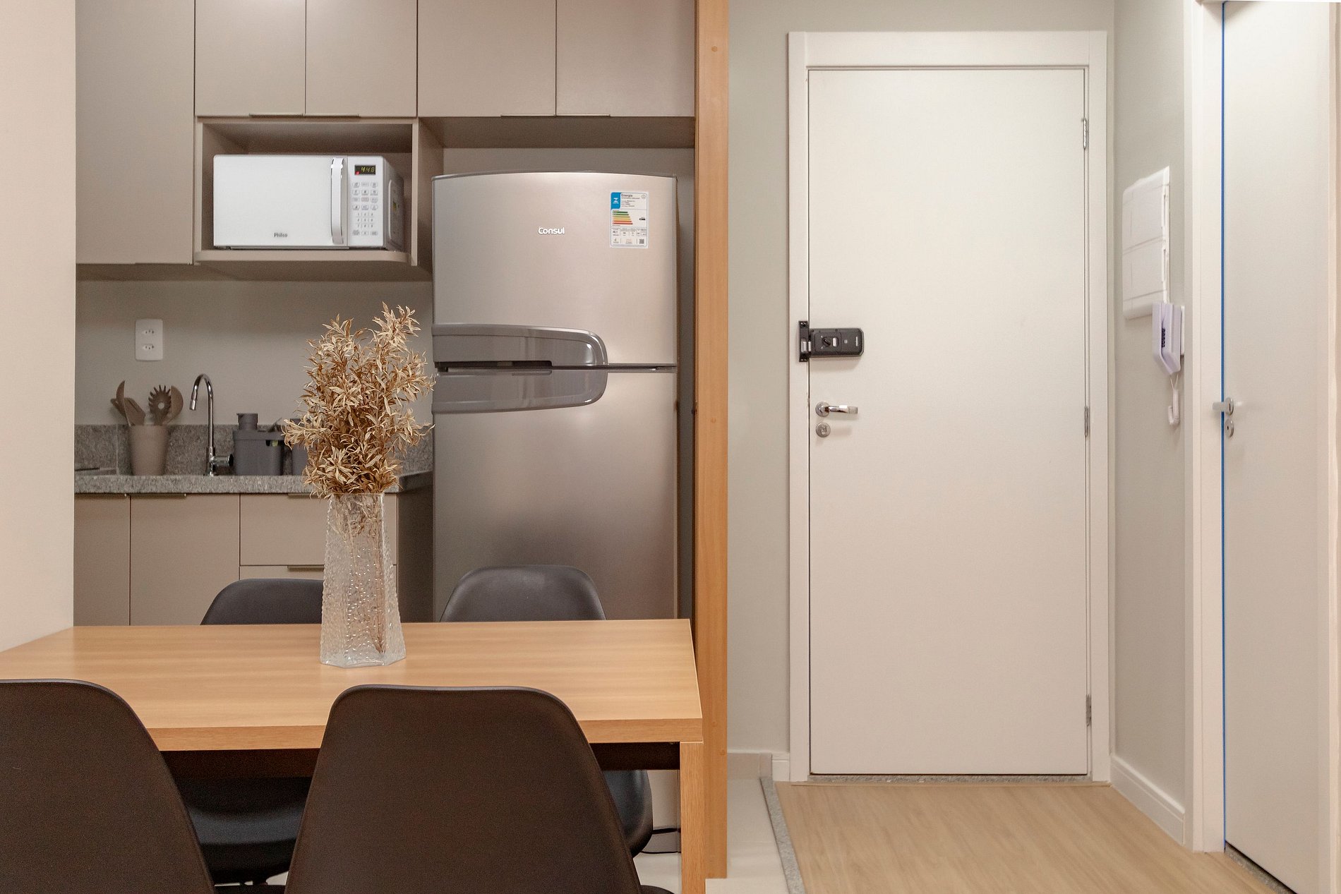 Área de Jantar - Mesa com 4 cadeiras.