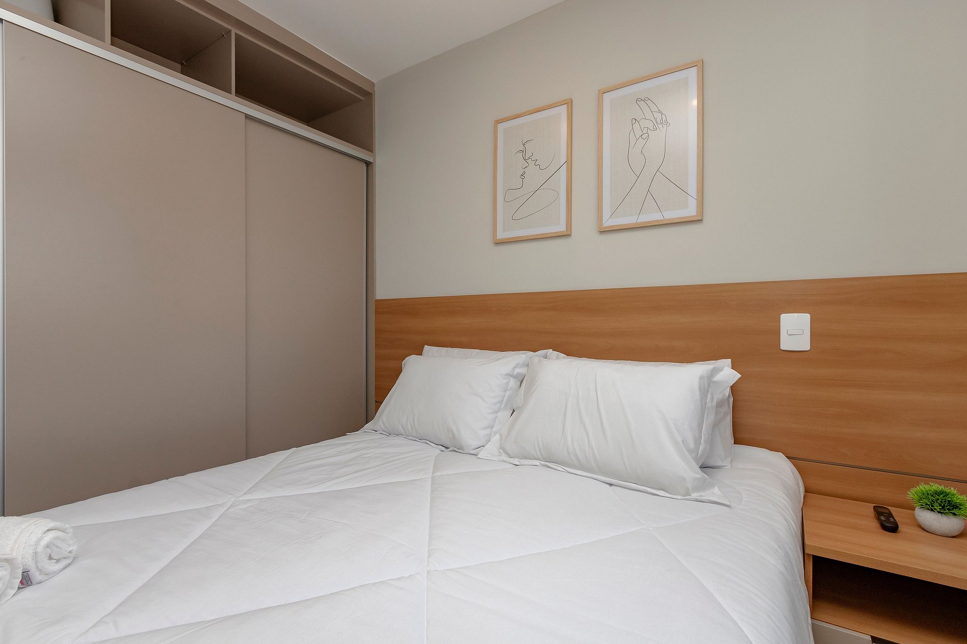 Quarto 1 - Cama Queen, ar condicionado, criado mudo e guarda roupa.