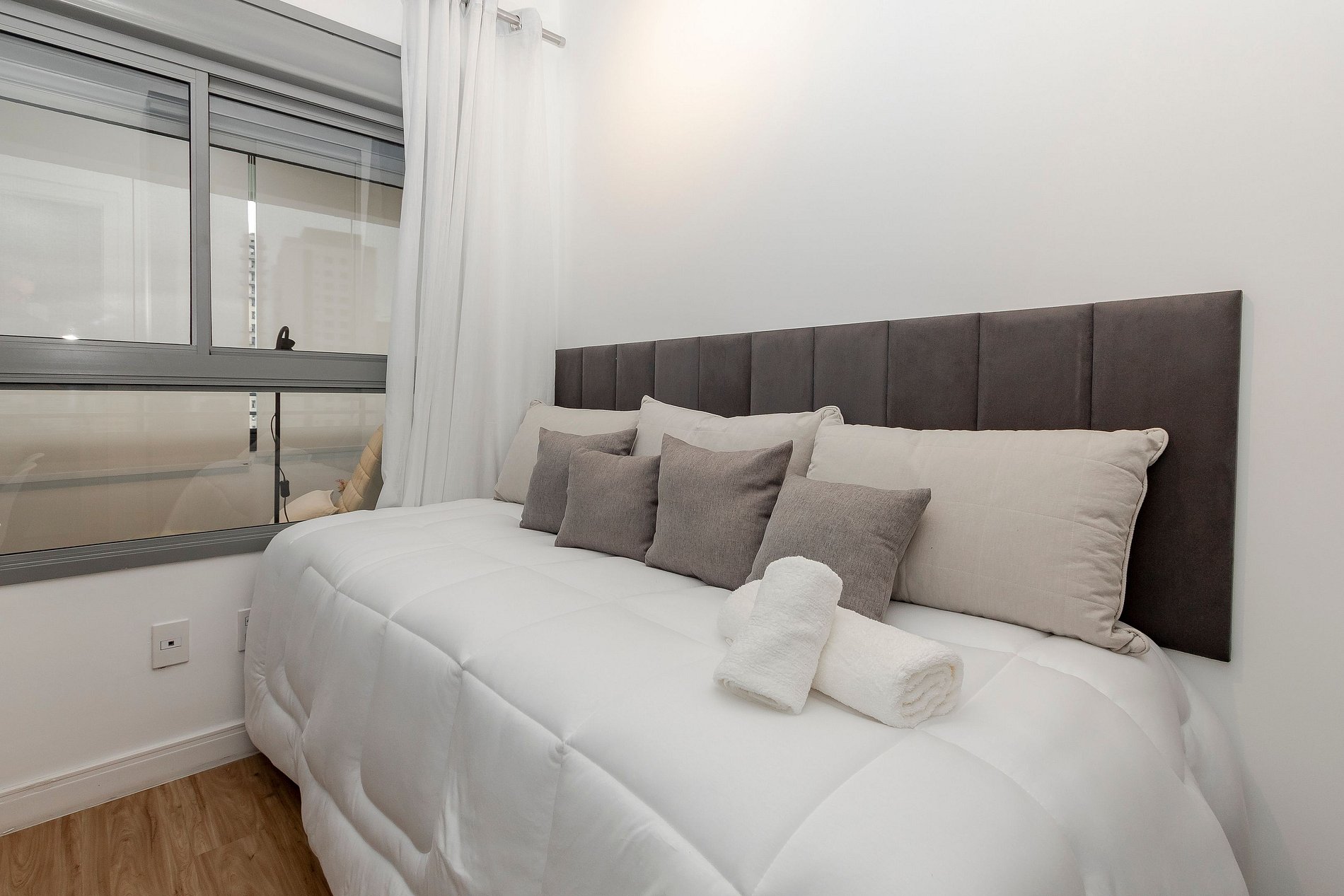 Aproveite todas as comodidades do nosso condomínio, que inclui piscina no rooftop, sauna, coworking, lavanderia e academia. Você está convidado a relaxar e se divertir durante a sua estadia!