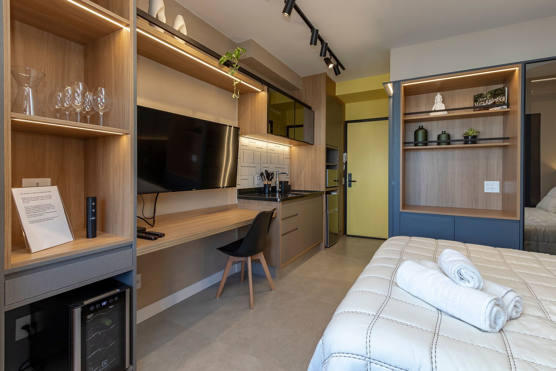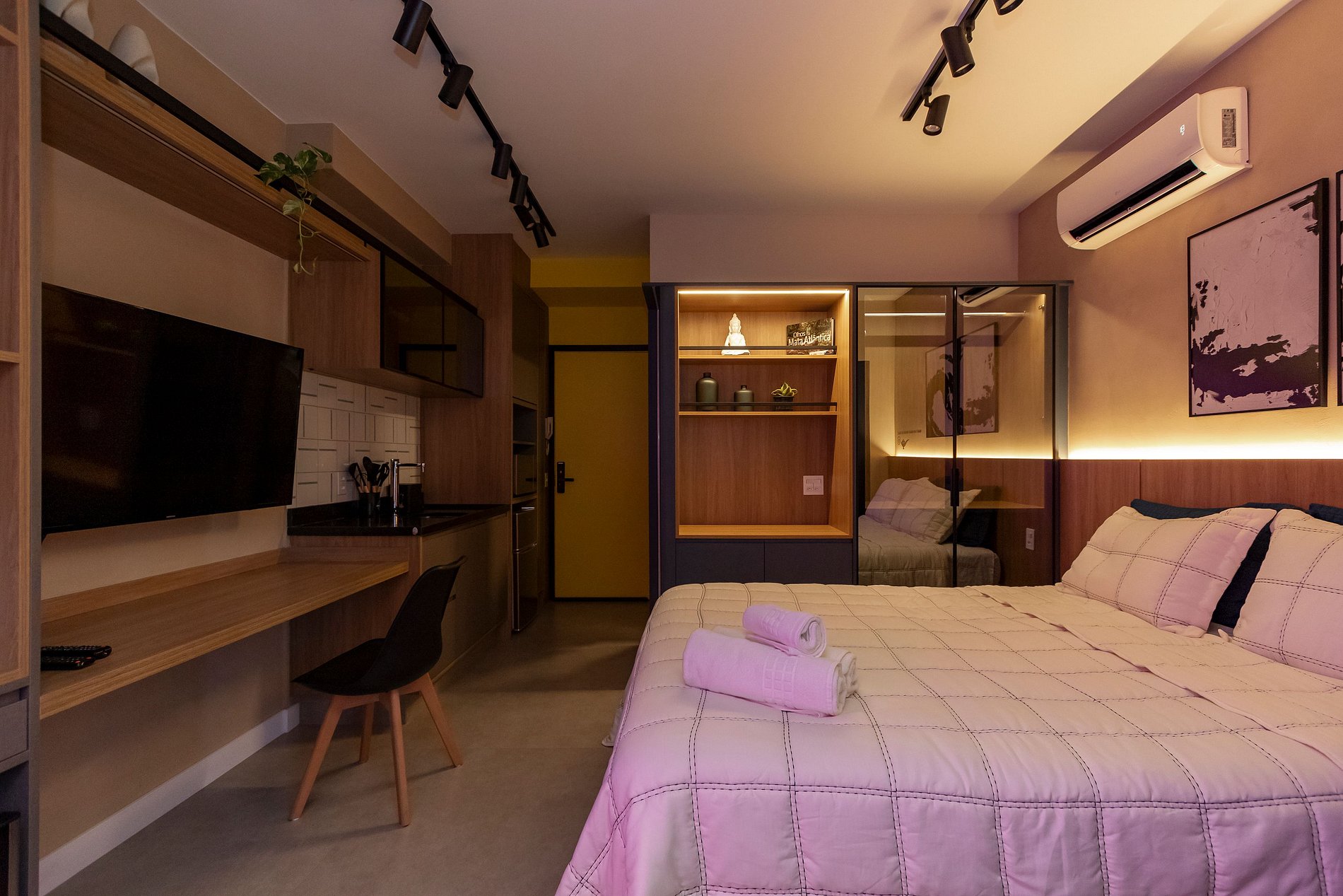 Projetado por Glaucio Gonçalves, o espaço convida ao aconchego e à tranquilidade com tons quentes e texturas suaves. Cada detalhe foi pensado para facilitar sua rotina, enquanto a personalidade única de cada canto te faz sentir em casa. Este não é apenas um lugar para ficar, mas um espaço que emociona e transforma.