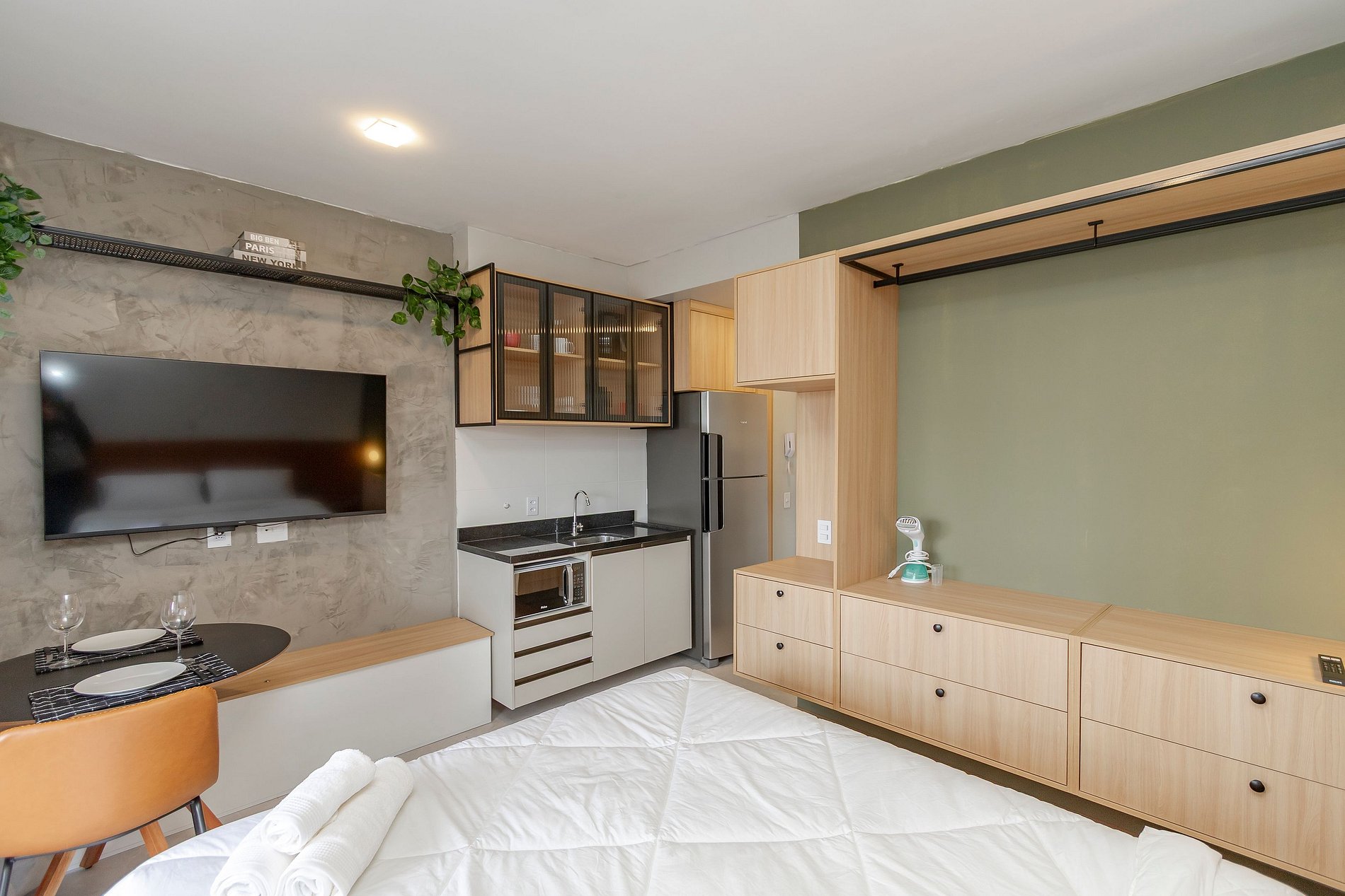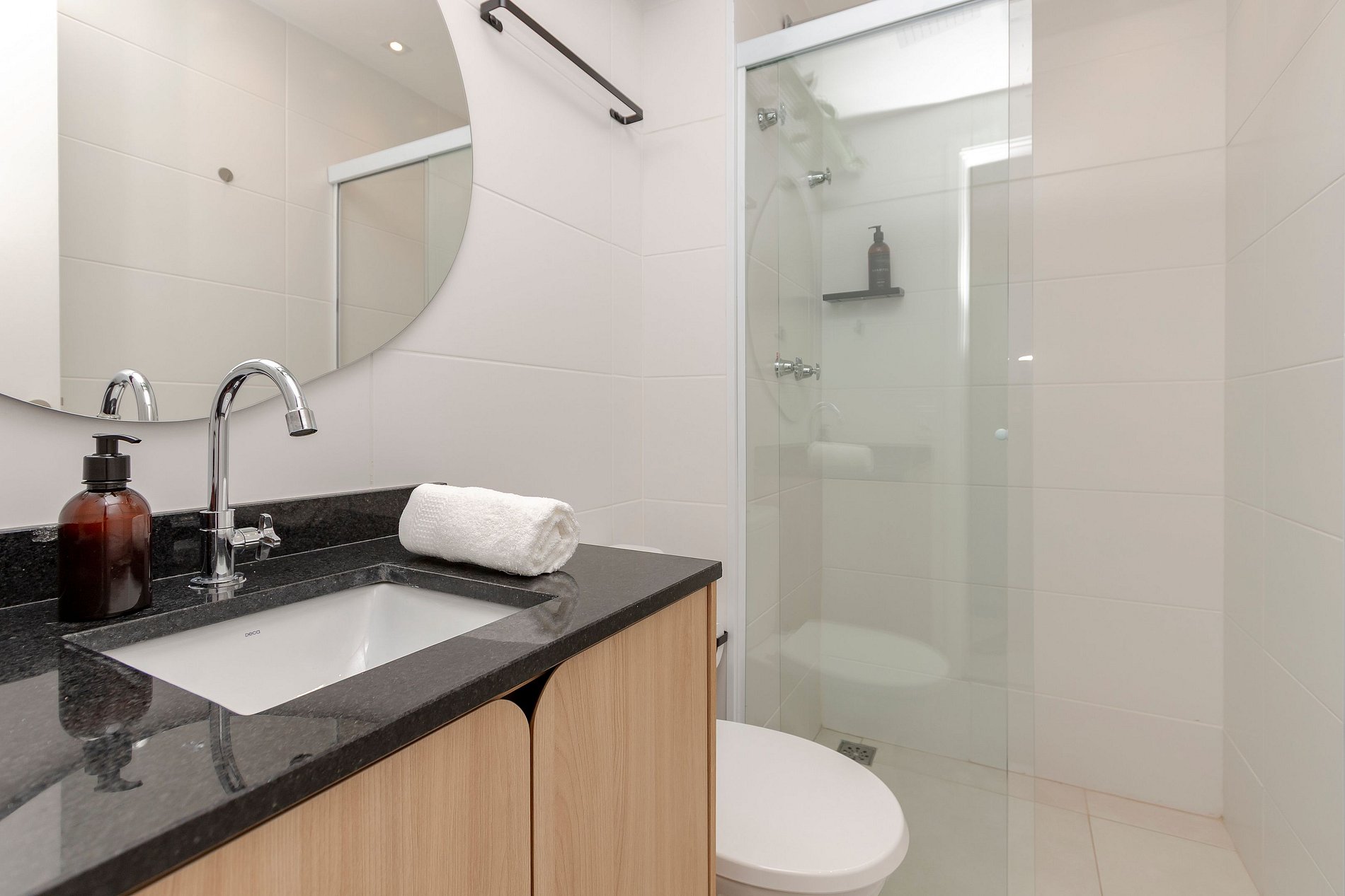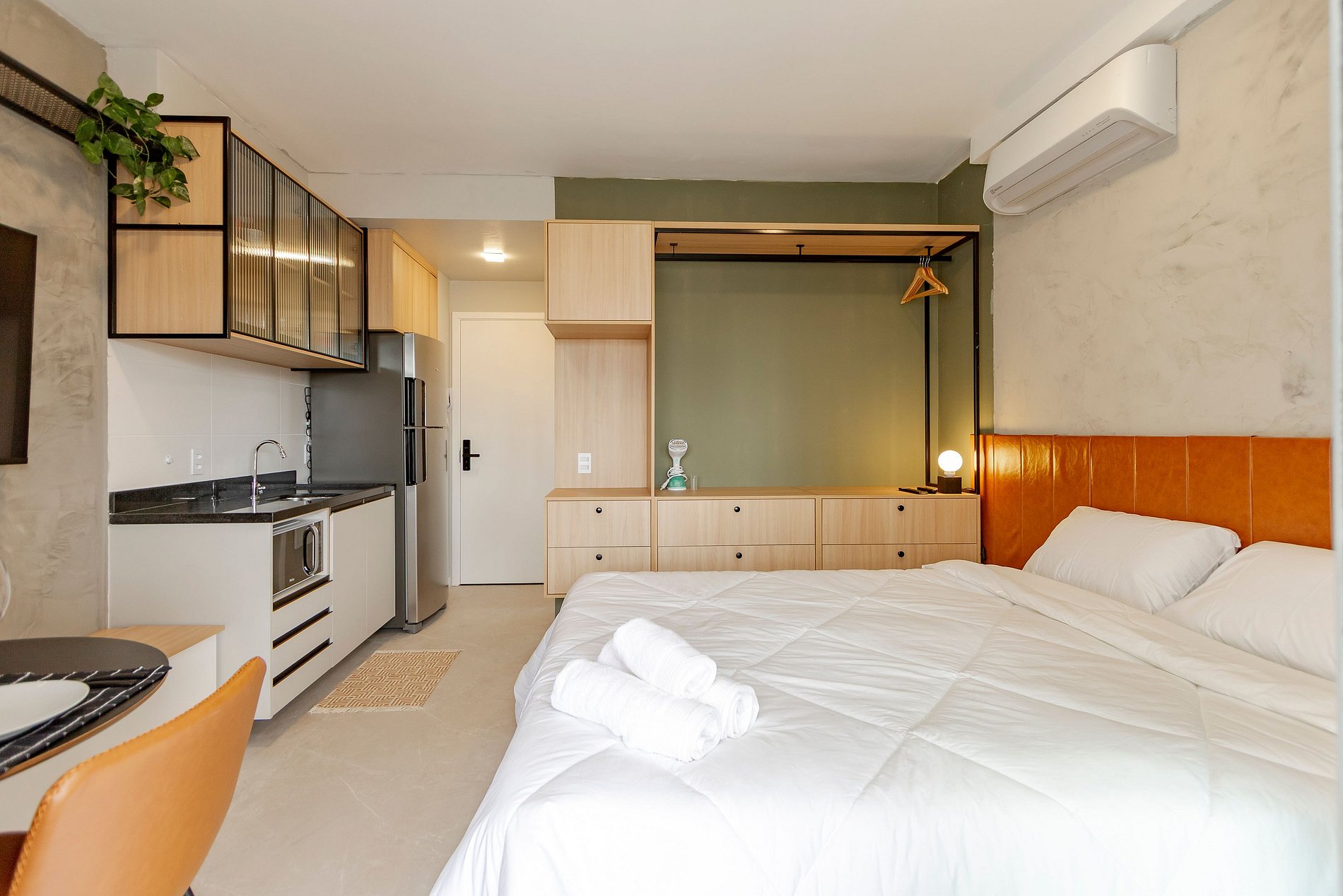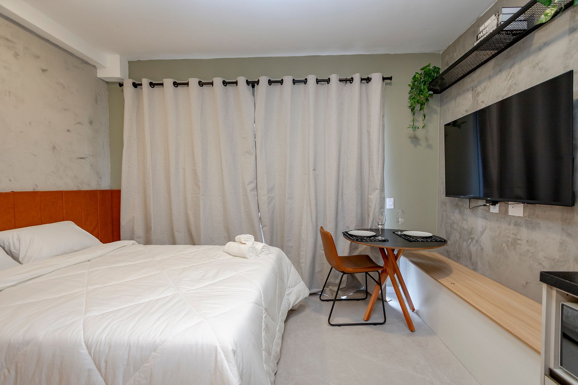 Aproveite todas as comodidades do nosso condomínio, que inclui piscina no rooftop, coworking, lavanderia e academia. Você está convidado a relaxar e se divertir durante a sua estadia!