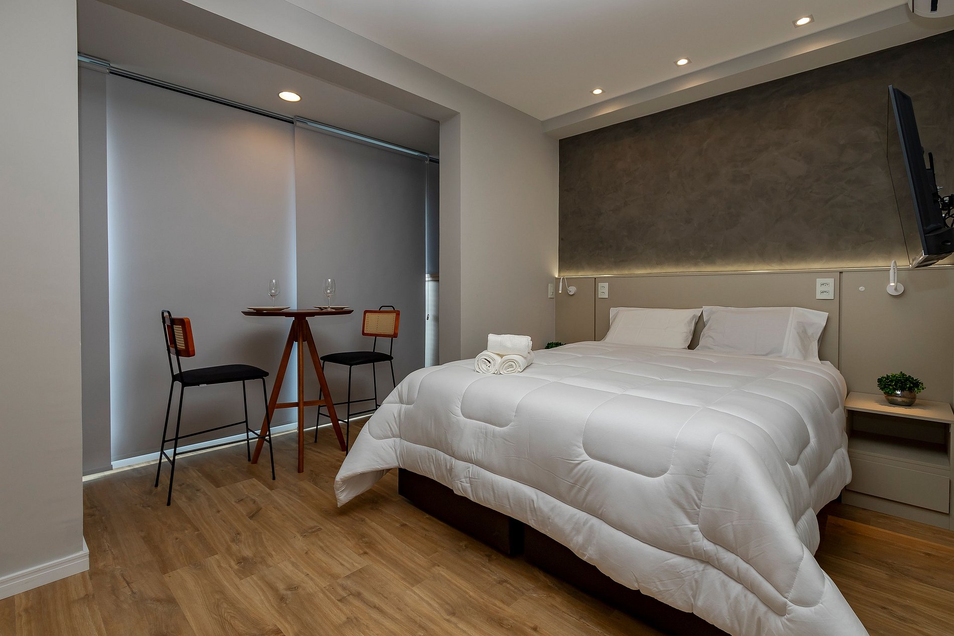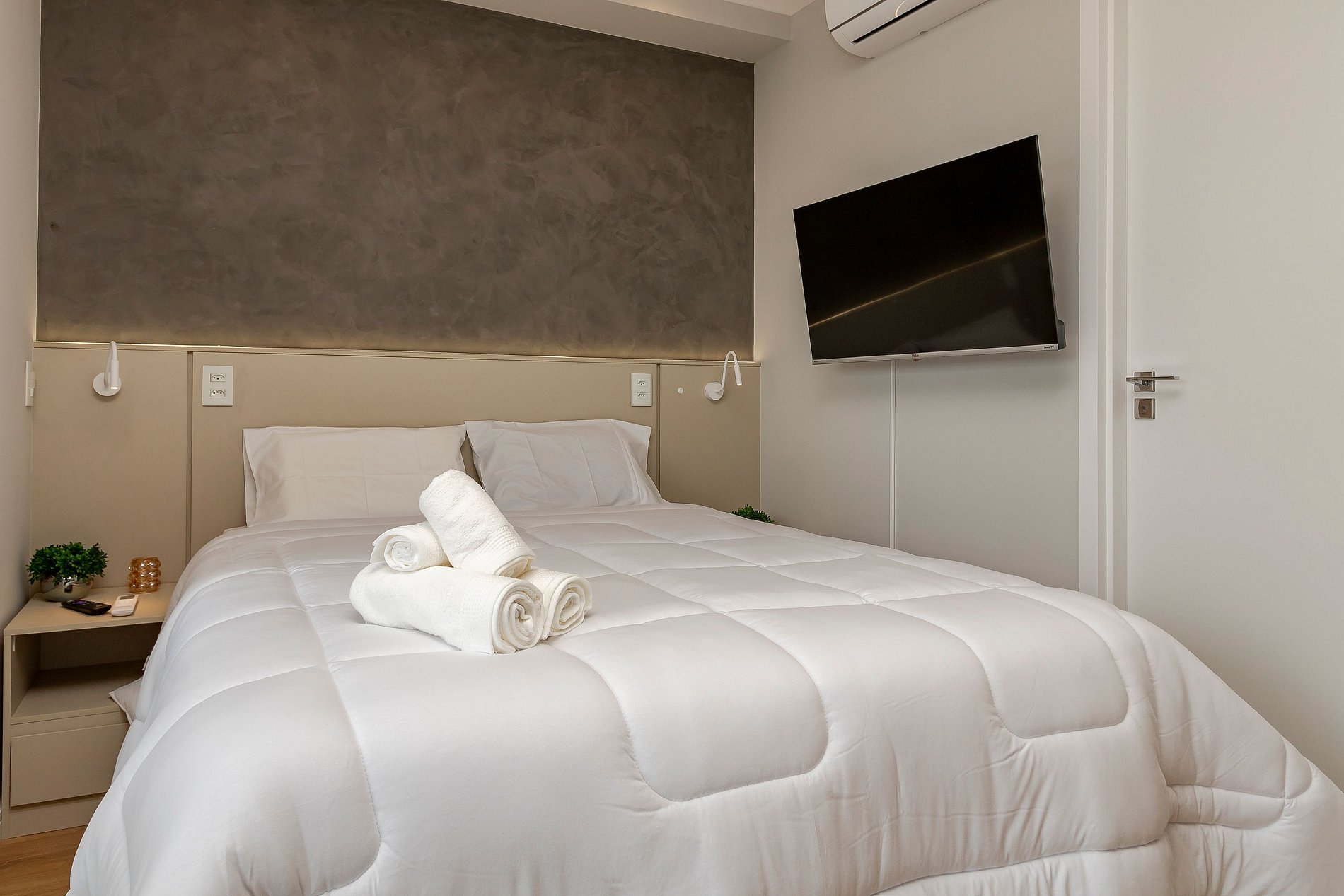 Aproveite todas as comodidades do nosso condomínio, que inclui piscina, coworking, sala de reuniões, sala de jogos, lavanderia e academia. Você está convidado a relaxar e se divertir durante a sua estadia!