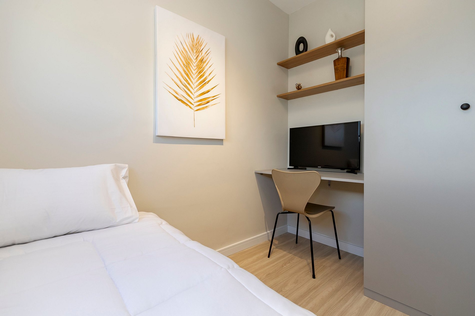 Quarto 2 - Cama de solteiro, Guarda roupa, TV e Mesa de escritório para home-office.