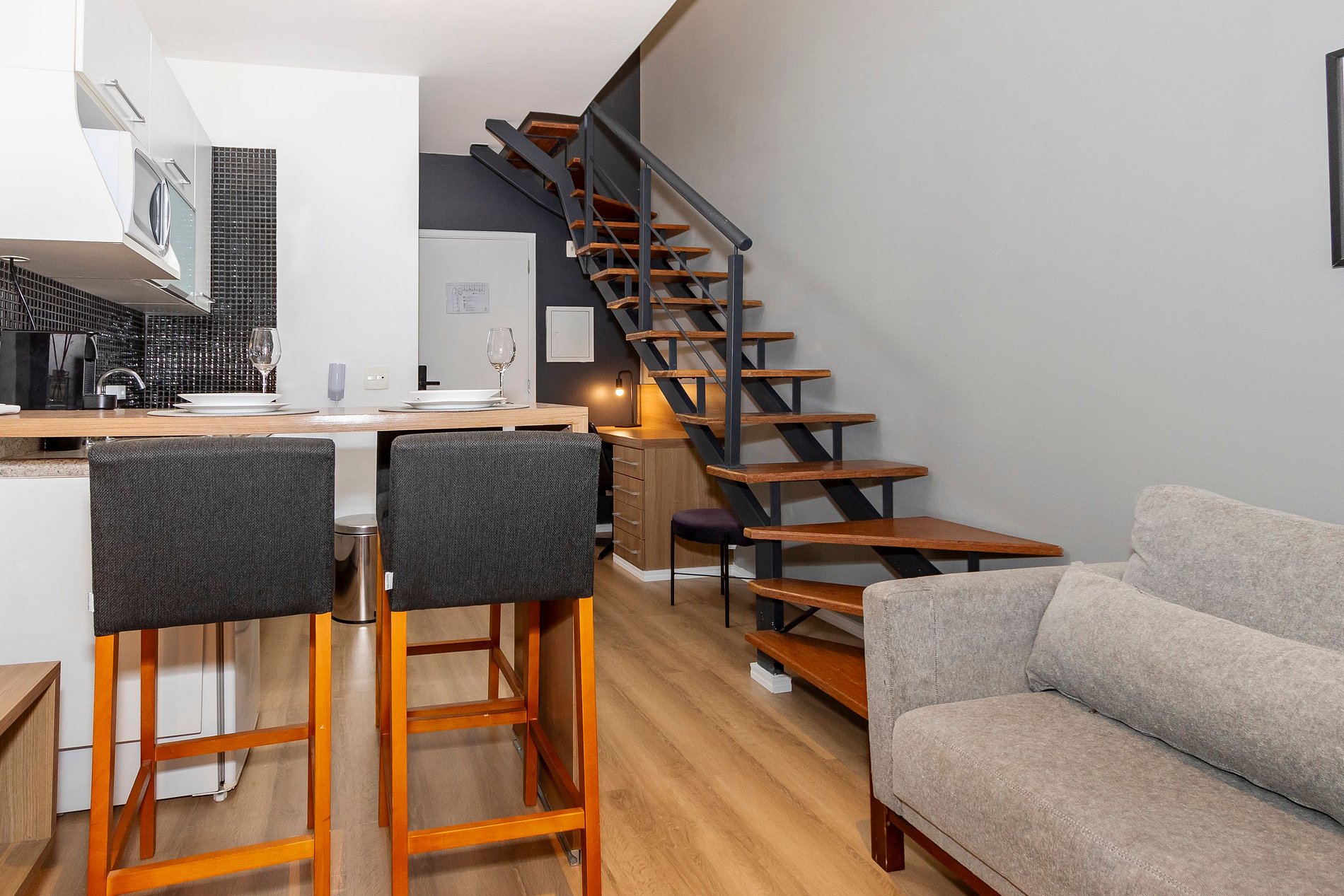 Área de estar com sofá/cadeira
